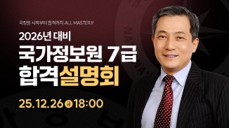 □ 2026 민진규 마스터 국가정보원 합격 설명회○ 국정원 시작부터 합격까지 All Master!○ 강사 : 민진규 교수(국가정보전략연구소 소장)○ 합격 설명회 일정 ▷일시 : 2025년 11월28일(금) 18:00 ▷강의시간 : 18:00 ~ 19:00 (10분전 까지 입실요망) …