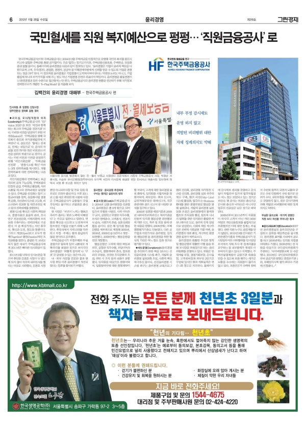 11월 28일자 신문에 실린 [윤리경영 대해부] 한국주택금융공사 편 기사를 소개합니다.