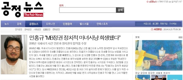 [공정뉴스기사안내]민홍규 MB정권 정치적 마녀사냥 희생됐다