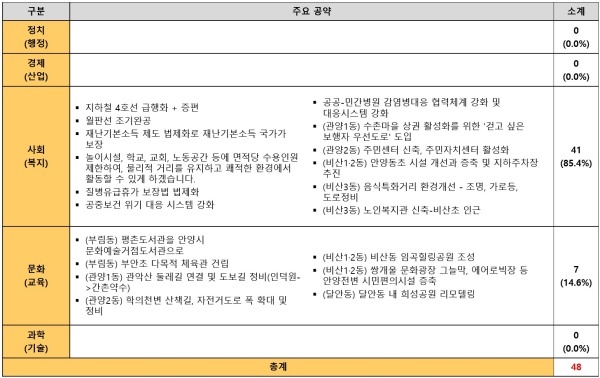 다음으로 △문화(교육) 공약 14.6% △경제(산업) 공약은 0.0% △정치(행정) 공약은 0.0% 이며 △과학(기술) 공약은 0.0%를 기록했다.