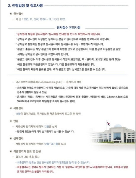 [국정원 채용 정보] 2025년도 국가정보원 경력직 상시채용 공고(원서접수 : 2025.11.05.(수) 10:00 ~ 11.11.(화) 16:00)