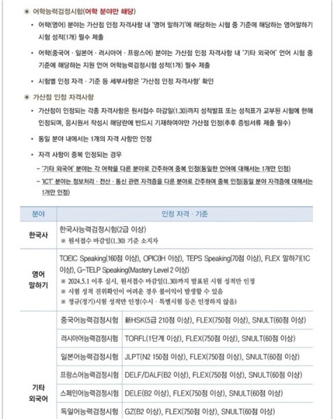 - 응시원서, 영어능력검정시험 성적, 자격사항 등 종합 평가
