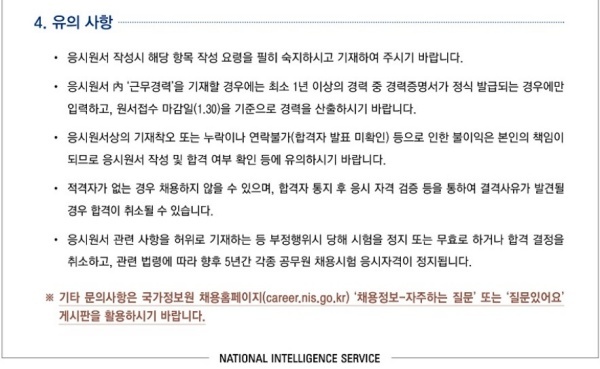 ※. 자세한 내용은 국가정보원 채용공고 사이트 확인