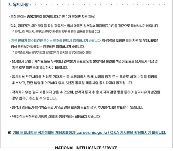 ※. 자세한 내용은 국가정보원 채용공고 사이트 확인