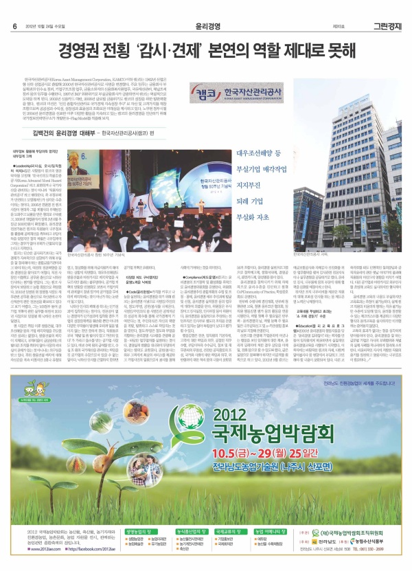 10월 24일자 신문에 실린 [윤리경영 대해부] 캠코(한국자산관리공사)편 기사를 소개합니다.