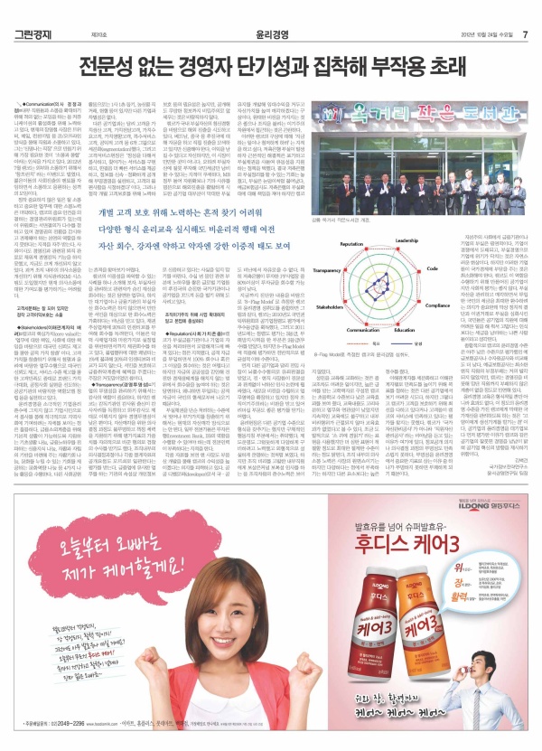 이런 노력의 결과물을 바탕으로 '국가정보전략연구소'와 '그린경제'는 2012년 9월 5일 수요일자 신문부터 '윤리경영 대해부'를 통해 기업을 평가하고 진단함으로서 경쟁력과 지속가능성장을 위한 기획물을 시리즈로 연재하고 있습니다.