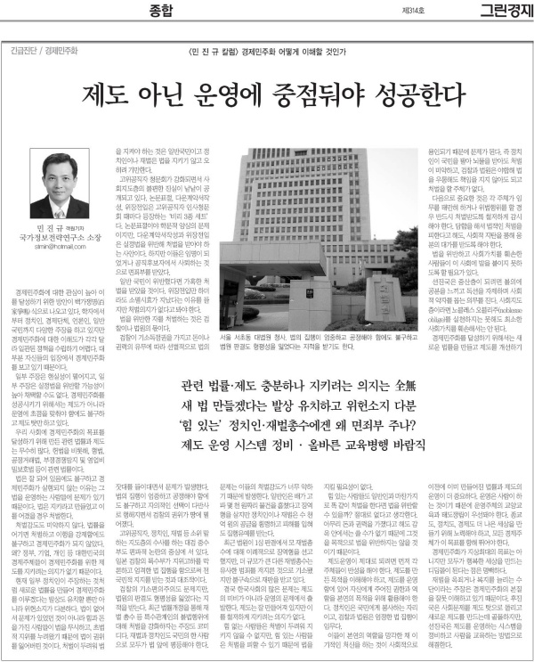 [민진규칼럼]경제민주화를 어떻게 이해할 것인가 3회 - 제도 아닌 운영에 중점둬야 성공한다.[국가정보전략연구소장]