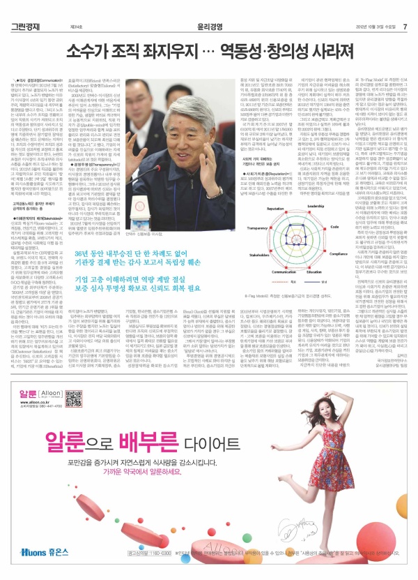 이런 노력의 결과물을 바탕으로 '국가정보전략연구소'와 '그린경제'는 2012년 9월 5일 수요일자 신문부터 '윤리경영 대해부'를 통해 기업을 평가하고 진단함으로서 경쟁력과 지속가능성장을 위한 기획물을 시리즈로 연재하고 있습니다.