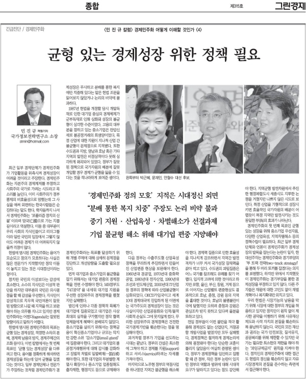 [민진규칼럼]경제민주화를 어떻게 이해할 것인가 4회 - 균형 있는 경제성장 위한 정책 필요[국가정보전략연구소장]
