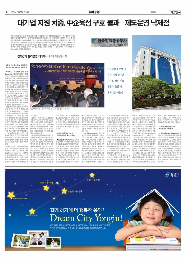 11월 14일자 신문에 실린 [윤리경영 대해부] 한국정책금융공사 편 기사를 소개합니다.