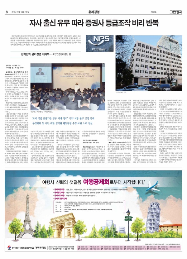 12월 12일자 신문에 실린 [윤리경영 대해부] 국민연금관리공단 편 기사를 소개합니다.