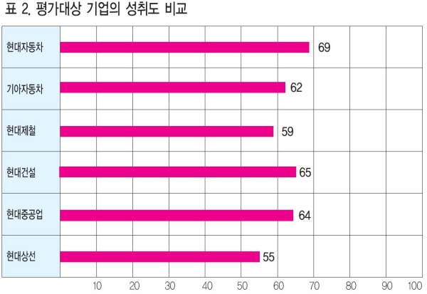 [위대한 직장찾기 5-1](범)현대그룹 평가대상 기업의 성취도 비교[국가정보전략연구소]