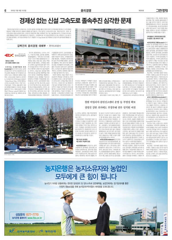 2013년 01월 16일자 신문에 실린 [윤리경영 대해부] 한국도로공사 편 기사를 소개합니다.