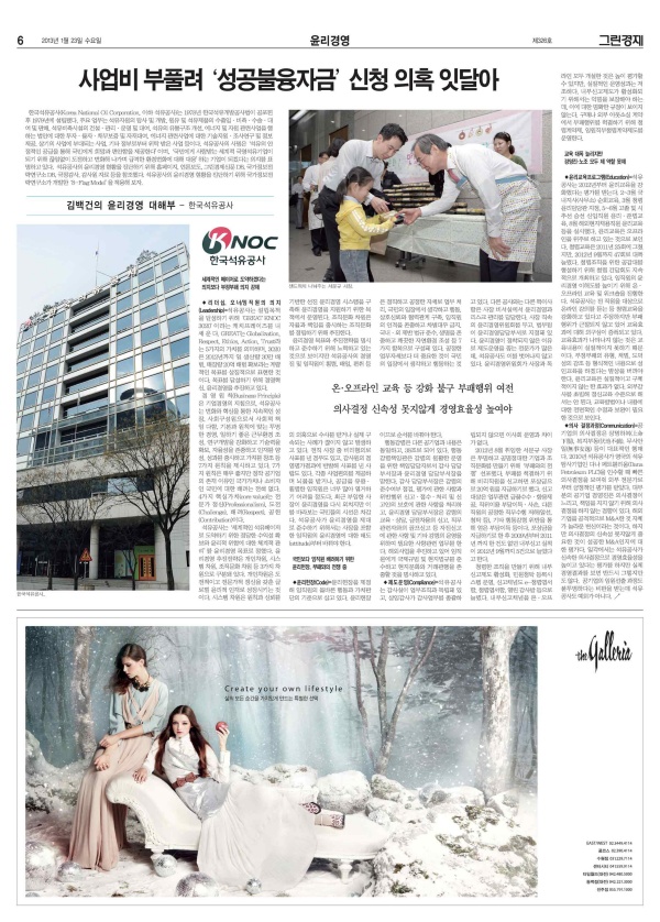 2013년 01월 23일자 신문에 실린 [윤리경영 대해부] 한국석유공사 편 기사를 소개합니다.