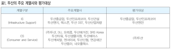 [위대한 직장찾기 8-2:두산그룹]두산의 주요 계열사와 평가대상[국가정보전략연구소]
