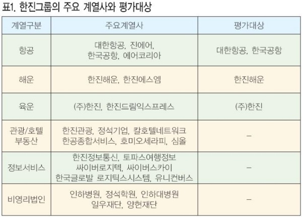 [위대한 직장찾기 10-2:한진그룹]한진그룹의 주요 계열사와 평가대상[국가정보전략연구소]