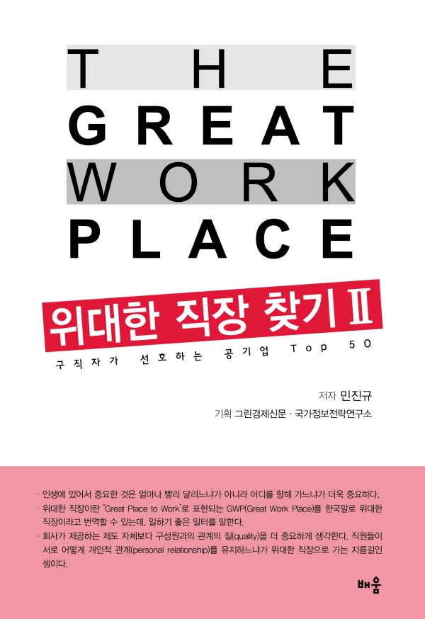 따라서, 오늘은 2013년 2월중에 "위대한 직장 찾기" 시리즈 중 제 1편 출간에 이어 제 2편 "THE GREAT WORK PLACE : 위대한 직장 찾기 II - 구직자가 선호하는 공기업 TOP50" 의 표지 디자인을 소개합니다.