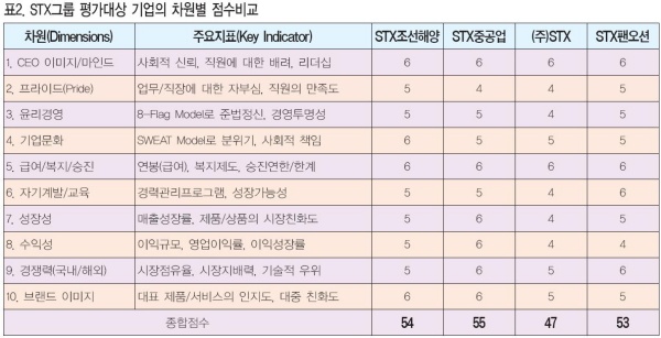 ▲ STX그룹 평가대상 기업의 차원별 성취도 점수