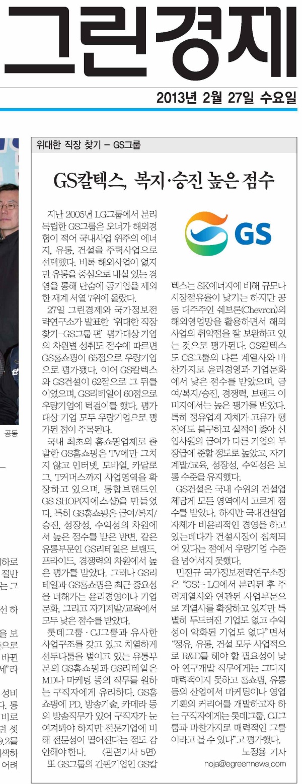 [위대한 직장찾기 12-1:GS그룹]GS칼텍스, 급여·복지 최고 수준[국가정보전략연구소]