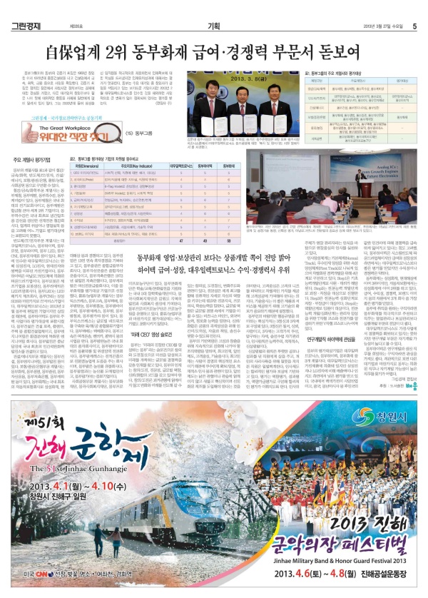自保업계 2위 동부화재 급여·경쟁력 부문서 돋보여
