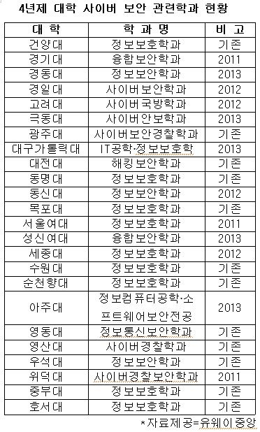 이 같은 사이버보안 관련 사고가 잇따르자 산업현장에서는 보안전문가의 수요가 급증해졌고, 각 대학들이 산업 현장의 흐름을 적극 반영하면서 '사이버보안' 학과가 인기를 누리고 있는 것이다.