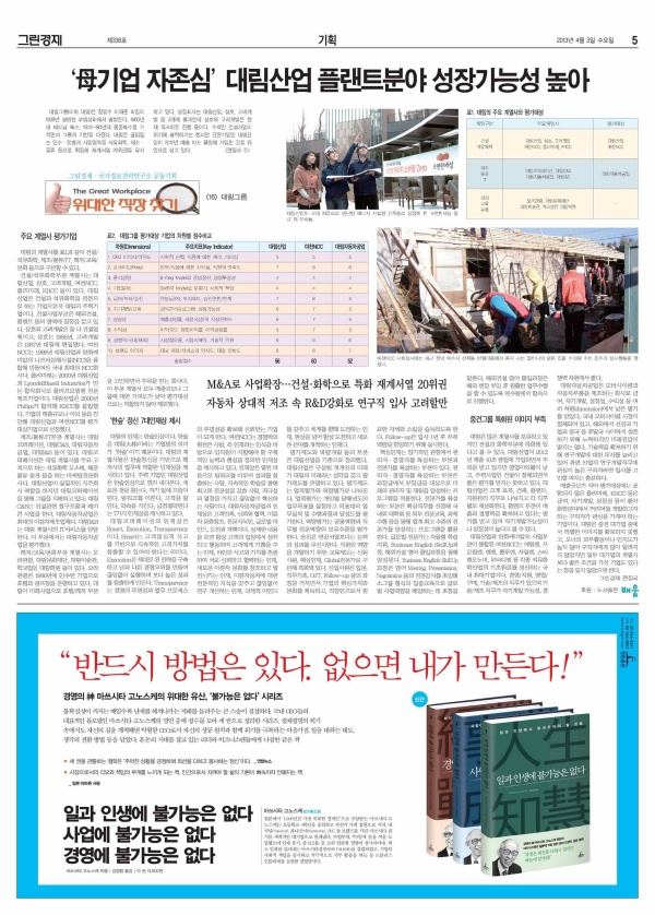 2013년 04월 03일자 신문에 실린 [위대한 직장 찾기]시리즈를 소개합니다.