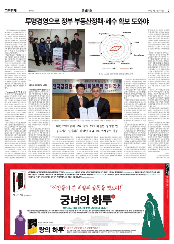 2013년 04월 17일자 신문에 실린 [윤리경영 대해부] 한국감정원 편 기사를 소개합니다.