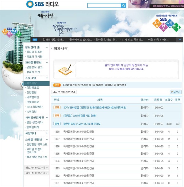 [SBS 라디오 홈페이지]