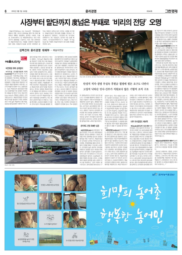2013년 05월 01일자 신문에 실린 [윤리경영 대해부] 예술의 전당 편 기사를 소개합니다.