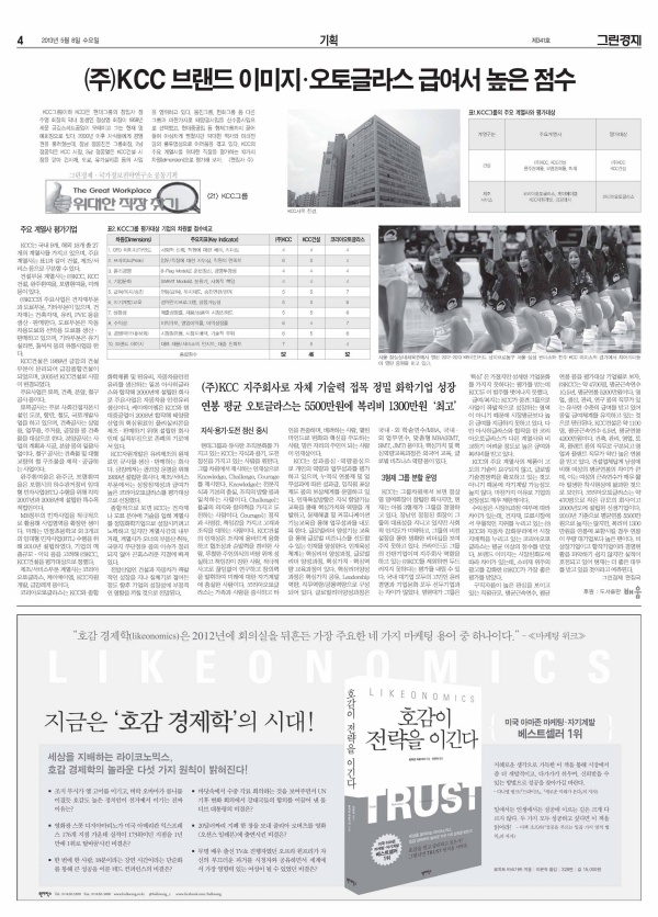 ㈜KCC 브랜드 이미지·오토글라스 급여서 높은 점수