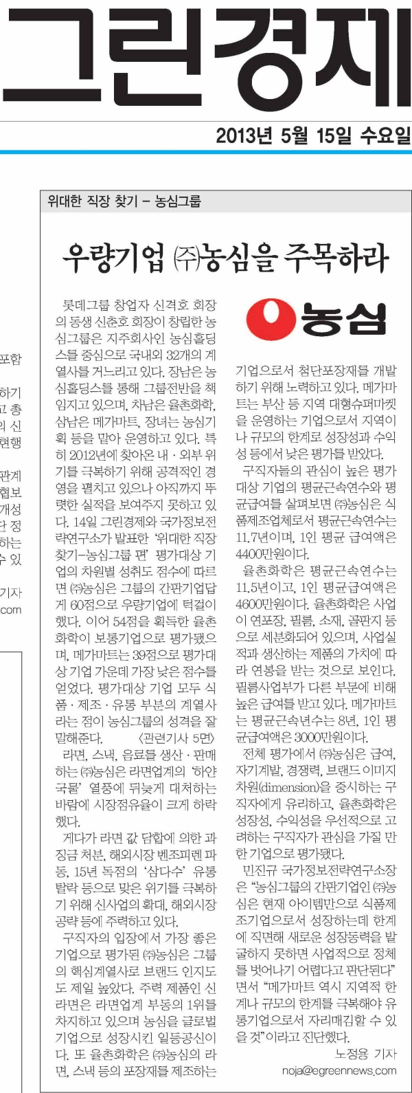[위대한 직장찾기 23-1:농심그룹]우량기업 (주)농심을 주목하라[국가정보전략연구소]