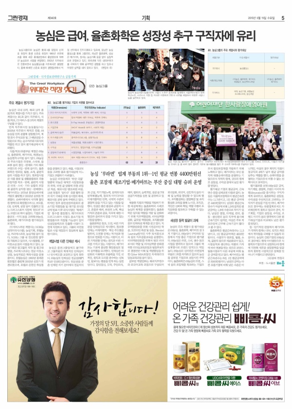 2013년 05월 15일자 신문에 실린 [위대한 직장 찾기]시리즈를 소개합니다.