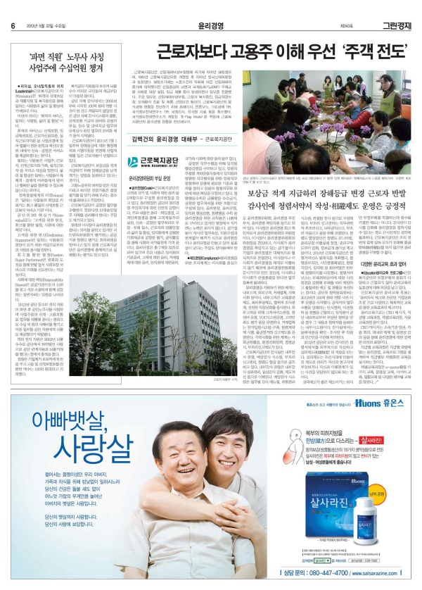 2013년 05월 22일자 신문에 실린 [윤리경영 대해부] 근로복지공단 편 기사를 소개합니다.