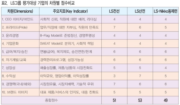 ▲ LS그룹 평가대상 기업의 차원별 점수비교