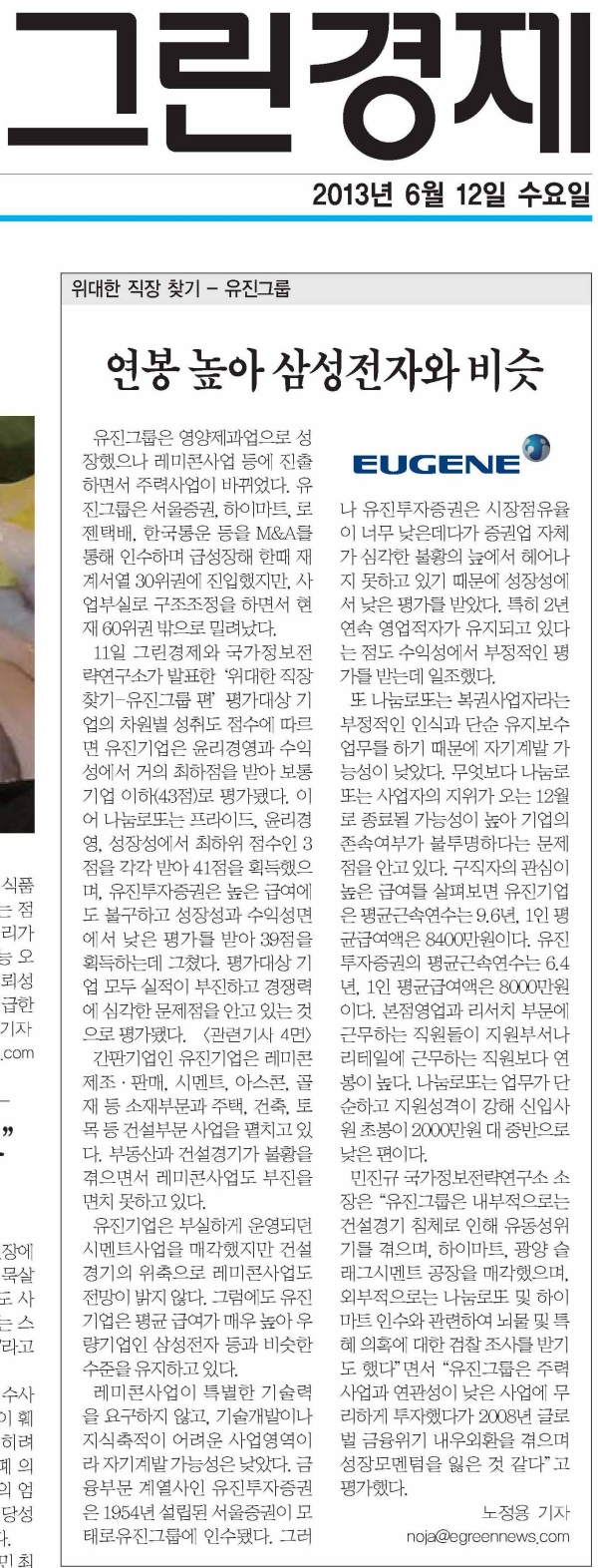 2013년 06월 12일자 신문에 실린 [위대한 직장 찾기]시리즈를 소개합니다.