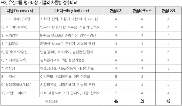 ▲ 유진그룹 평가대상 기업의 차원별 점수 비교