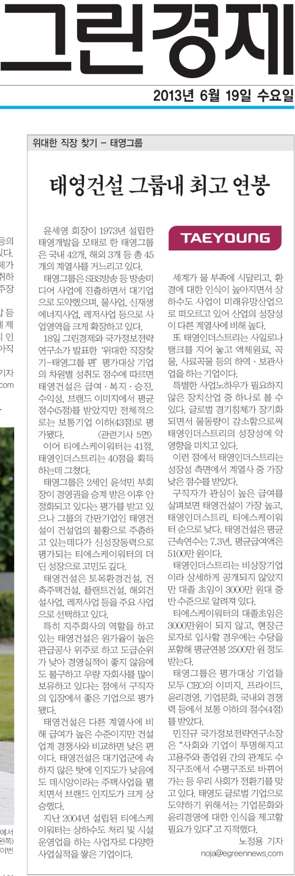 [위대한 직장찾기 28-1:태영그룹]태영건설 그룹내 최고 연봉[국가정보전략연구소]