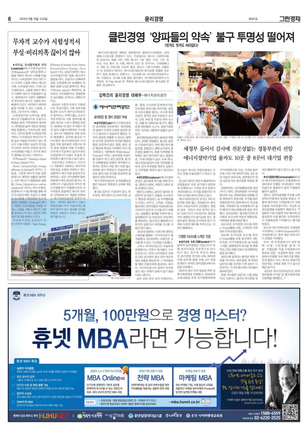 2013년 06월 19일자 신문에 실린 [윤리경영 대해부] 에너지관리공단 편 기사를 소개합니다.