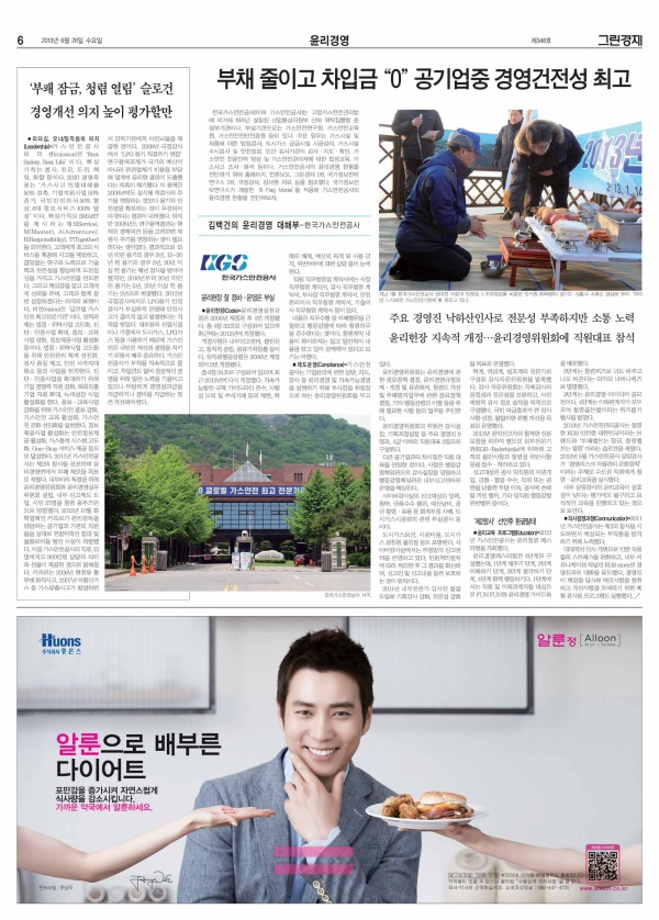 2013년 06월 26일자 신문에 실린 [윤리경영 대해부] 한국가스안전공사 편 기사를 소개합니다.