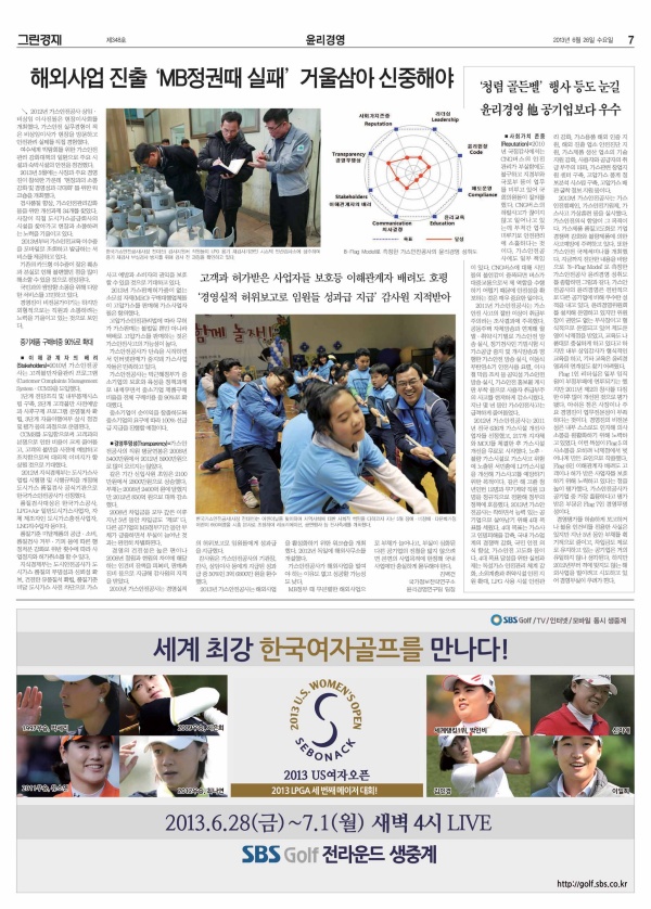 2013년 06월 26일자 신문에 실린 [윤리경영 대해부] 한국가스안전공사 편 기사를 소개합니다.