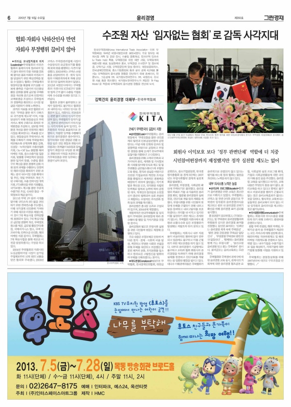 2013년 07월 10일자 신문에 실린 [윤리경영 대해부] 한국무역협회 편 기사를 소개합니다.