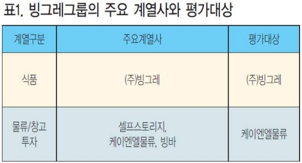 [표1. 빙그레의 주요 계열사와 평가대상]