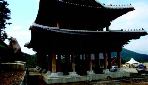 웅장한 등황전과 귀감석(왼쪽 바위). 민홍규는 완공을 못하고 영어의 몸이 됐다.
