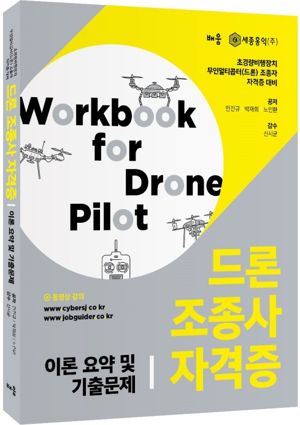 드론 조종사 자격증 문제집은 필기시험 합격을 위한 이론+기출문제, 실기시험에 대비할 수 있도록 부록에 구술평가와 실비행 시험 평가 기준 + 구술평가 기출문제, 항공안전법 등으로 구성되어 있습니다.