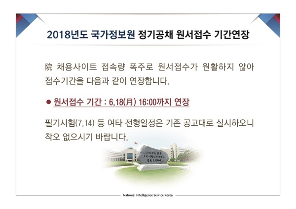 2018년도 정기공채 원서접수 기간연장 공지[2018-06-14 ~ 2018-06-18]