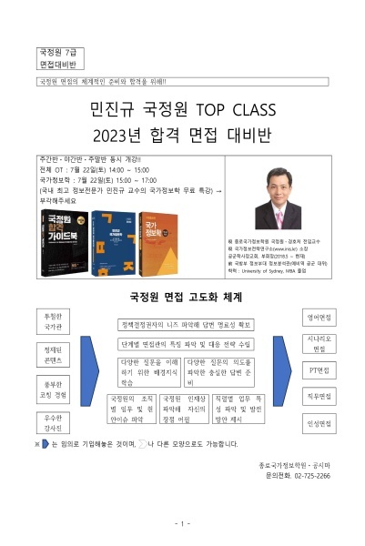 ▲ 2023년 국정원 7급 면접 대비 강좌 소개 [출처=종로국가정보학원]