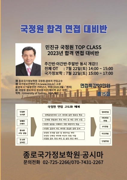 [국정원 면접강좌] 2023년 국정원 7급 면접 대비반 수강 안내-종로국가정보학원