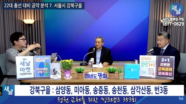 ▲ 왼쪽부터 푸른나무, 민진규 소장(국가정보전략연구소), 이상구 원장 [출처=새날 유튜브]