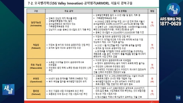 평가를 위한 방송에는 푸른나무, 이상구 원장, 민진규 소장(국가정보전략연구소)등이 출연했다. 평가 방법은 국가정보전략연구소(국정연, iNIS)가 개발한 ‘오곡(五穀)밸리혁신(5G Valley Innovation)-선거공약’ 평가 모델을 적용했다.