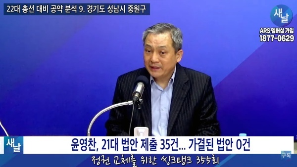 ▲ 경기도 성남시 중원구 윤영찬 의원 공약 평가 인트로 [출처=새날 유튜브]